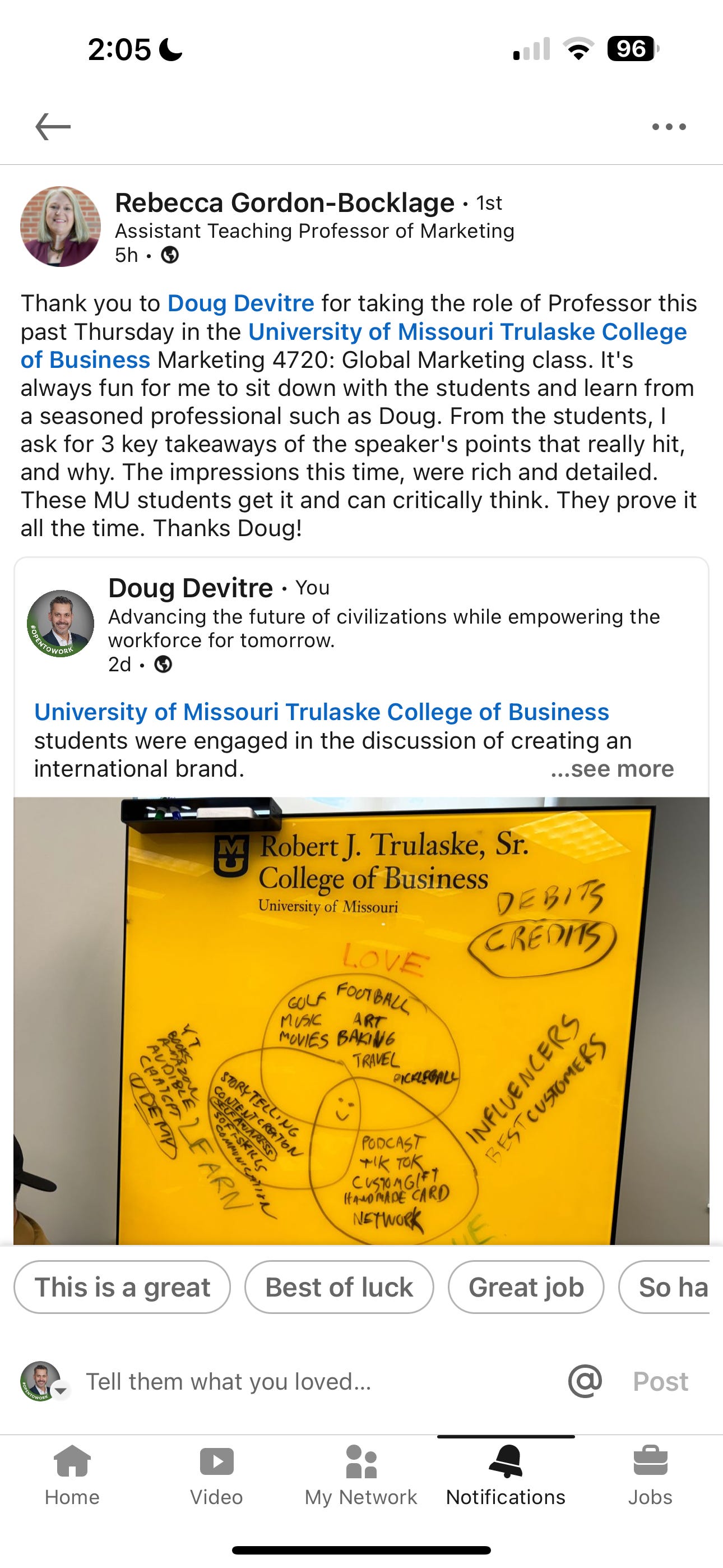 Last week I was invited to return to the University of Missouri-Columbia to speak to the Trulaske College of Business. I also volunteered to be a professor for a day for a class on Global Marketing and serve as a panelist for the Making Me Marketable business conference held on campus.